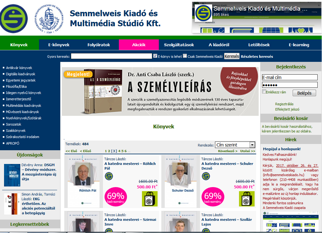 Ahhoz, hogy ne veszítse el eddigi megrendeléseinek történetét, e-könyveinek újra letöltési lehetőségét, hírlevélkérését, s hogy a Semmelweis Kiadó többezres követőihez továbbra is tartozzon, meg kell erősítenie szándékát. Ezért ÚJ HONLAPUNKON VALÓ ELSŐ BELÉPÉSÉHEZ KÉRJEN JELSZÓEMLÉKEZTETŐT, MERT A RÉGI JELSZAVÁVAL NEM TUD BELÉPNI, NEM TUD VÁSÁROLNI!