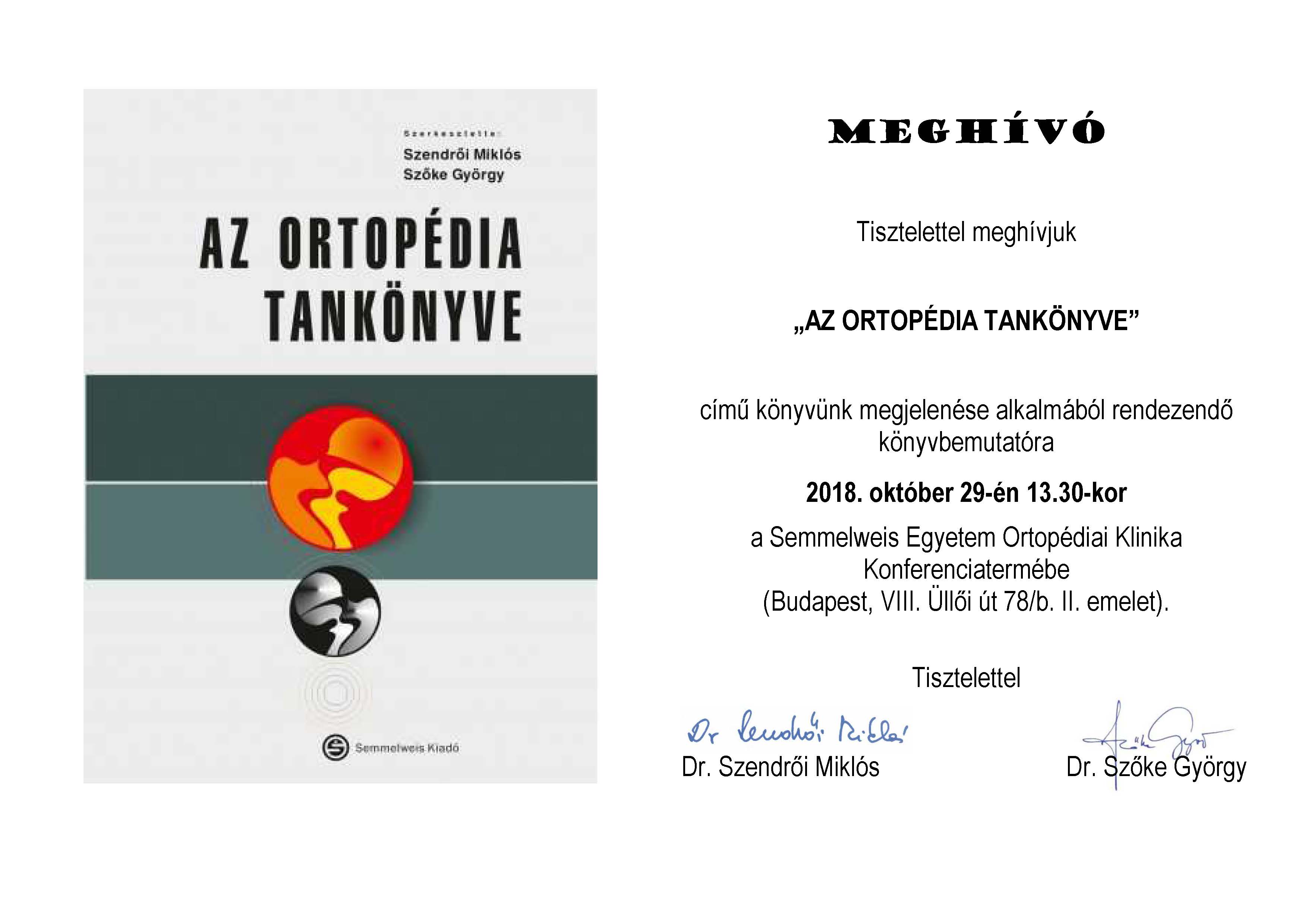 2018. október 29-én 13:30-kor, a Semmelweis Egyetem Ortopédiai Klinika Konferenciatermében.