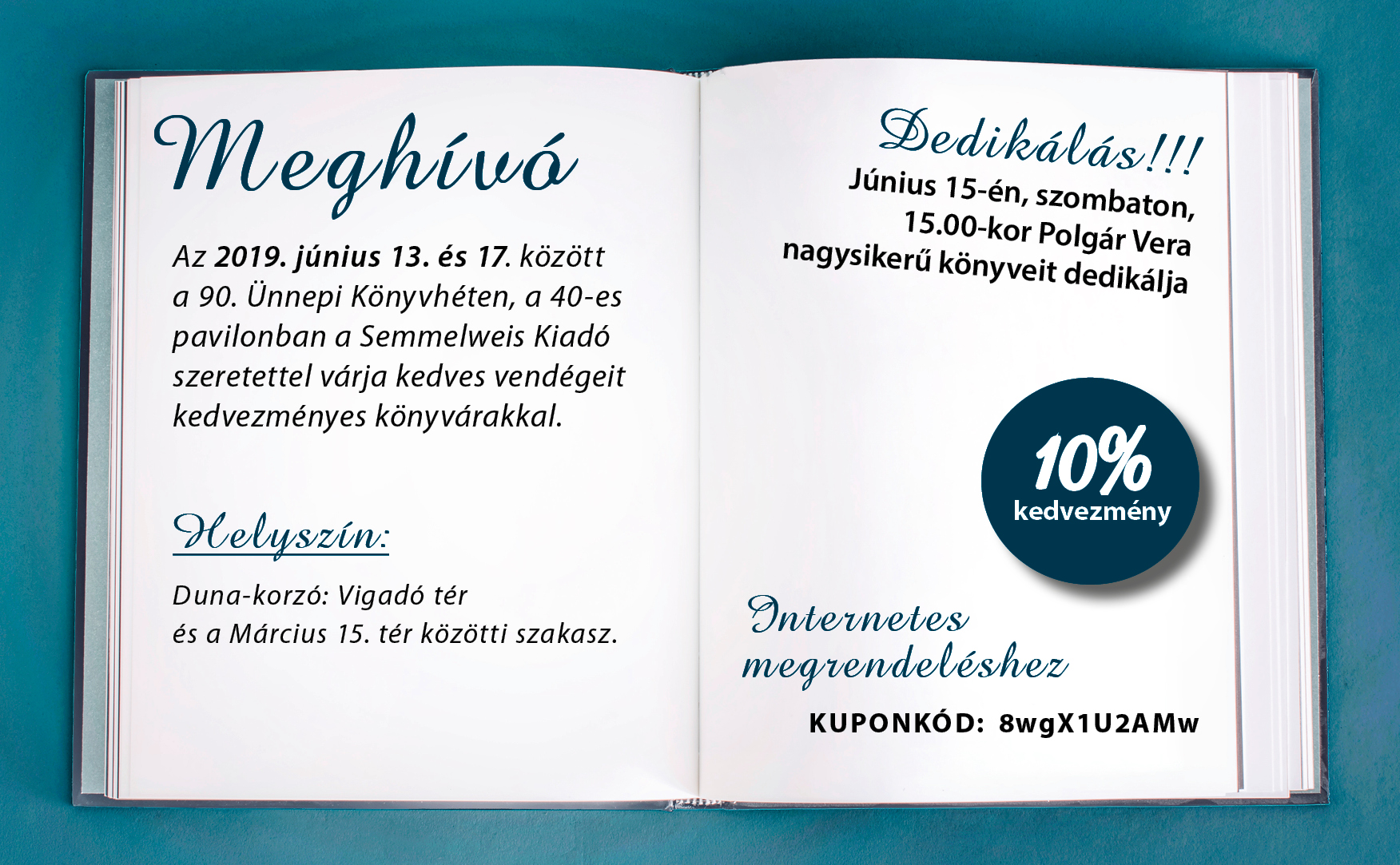 Az 2019. június 13. és 17. között a 90. Ünnepi Könyvhéten, a 40-es pavilonban a Semmelweis Kiadó szeretettel várja kedves vendégeit kedvezményes könyvárakkal.